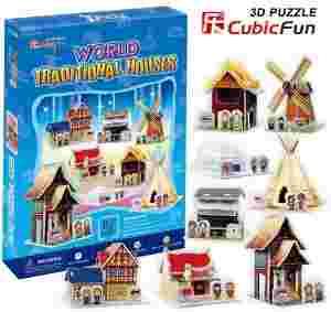 PUZZLE 3D TRADYCYJNE DOMKI 8 szt