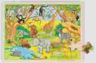 Drewniane zabawki puzzle pokazujące afrykańskie zwierzątka. W zestawie znajduje się 48 elementów. Układanie puzzli rozwija wyobraźnię przestrzenną, rozbudza ciekawość świata. Te puzzle będą doskonałą rozrywką dla dziecka. Jednocześnie ma szansę zobaczyć życie na wsi. Na 46 elementach pokazano zwierzęta charakterystyczne dla Afryki.