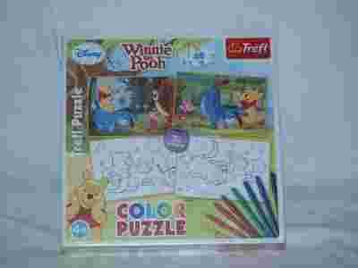 Puzzle do kolorowania Kubuś Puchatek. Dwustronne puzzle do układania i kolorowania. Doskonała edukacyjna układanka pobudzająca u dzieci zdolności manualne i kreatywność. Elementy obrazków posiadają dwustronny nadruk. Tylk NA Io oryginalna Disney