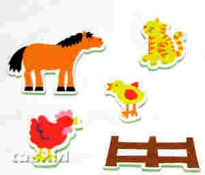 Zestaw zawiera duże kolorowe puzzle, z których można tworzyć historyjki obrazkowe ze zwierzątkami z farmy - za każdym razem inne. Super zabawa podczas kąpieli.