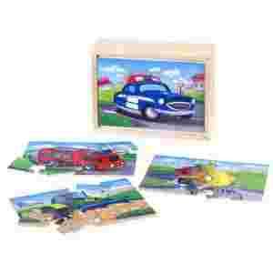 Puzzle pojazdy w pudełku 4 rodzaje