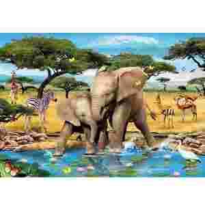 PUZZLE RAVEN. 200 EL. XXL Zabawa Słoni w wodzie