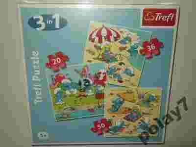 PUZZLE TREFL 3 W 1, + 5 LATA, SMERFY