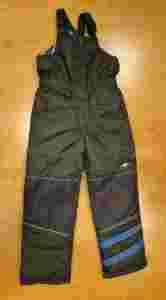 Spodnie z przodu na zamek , rzepę i zatrzaski. Szelki z szerokiej gumy z regulacja. W pasie spodnie mają gumkę. Spodnie z bocznymi kieszonkami.
