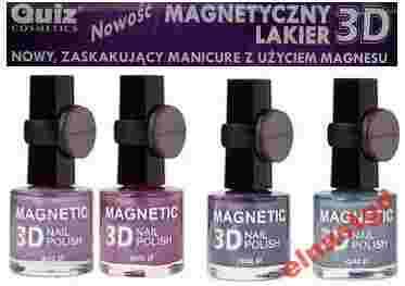 Quiz Cosmetics wyznacza nowy trend w stylizacji paznokci. MAGNETYCZNY LAKIER 3D odmieni Twój manicure, tworząc na paznokciach różnorodne magnetyczne wzory. W każdym pudełku znajduje się magnetyczny lakier i specjalny magnes.
