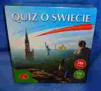 "Quiz o Świecie" - fascynująca gra i świetna zabawa, w trakcie której uczestnicy odpowiadają na pytania dotyczące historii, geografii i przyrody, nauki i techniki oraz kultury i sztuki świata. Na 110kartach jest 388 pytań i 1164 warianty odpowiedzi. Podczas gry trzeba wykazać się również swoją zręcznością, strzelając z katapulty do celu.
