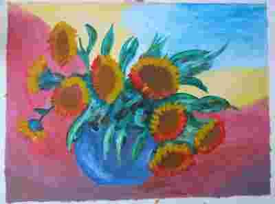 "Słoneczniki w donicy" obraz olejny