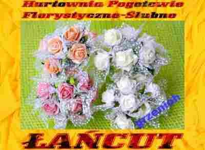 Róża Róże PIANKOWE na drucie z TIULEM 2,5cm/8szt!!