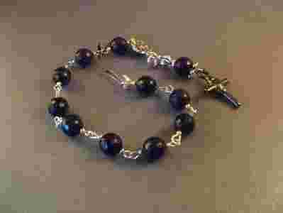 Wykonana : Kamień Jadeit Czarny Fasetowany 8 mm,elementy Bali, elementy posrebrzane,krzyżyk Akrylowy.