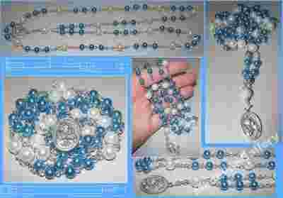 Różaniec jest wykonany ręcznie, bardzo starannie z pięknych szklanych, perłowych korali, a także medalika ze św. Józefem.