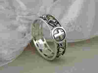 Różaniec srebrny na palec, średn. wew.15,7-21,7 mm