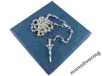 Przedmiotem aukcji jest wysokiej jakości wykonania różaniec srebrny