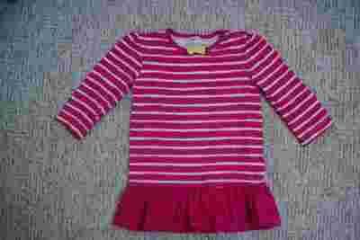 Różowa tunika w paseczki, falbanka, kokardka-neon