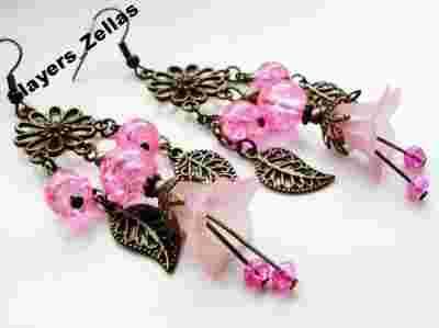 RÓŻOWE KWIATY - kolczyki w stylu Vintage -handmade