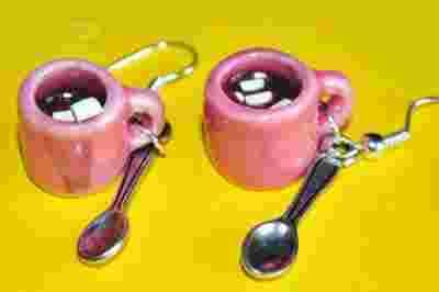 RÓŻOWY KUBEK, modelina kolczyki wiszące handmade