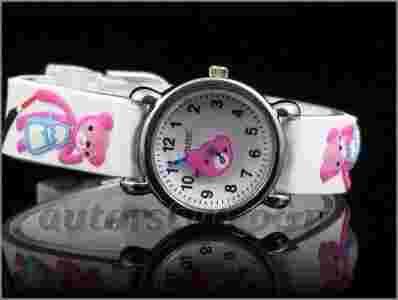 Zegarek jest przystosowany dla dzieci , dobrze czytelny , kolorowy ,ma wyróżniające się wskazówki aby lepiej odczytywać godzinę , zamiast wskazówki sekundowej zastosowano przeźroczysty krążek z ślicznym różowym misiem, który się kręci w około tarczy . Efekt jest niesamowity !!!!!!!