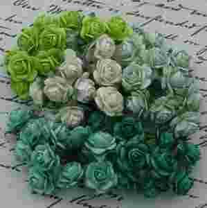 Różyczki mix zielony 15mm -5szt -papierowe kwiaty