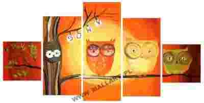 RĘCZNIE MALOWANY MĄDRE SOWY OBRAZ PREZENT 100X50