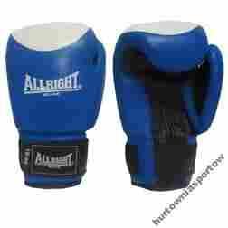 Rękawice bokserskie z naturalne skóry wołowej. Bardzo dobrze wyprofilowane, wypełnione wysokiej gęstości pianką. Standardowy mankiet z zapięciem na rzep. Pokryte kolorem czerwono-białym z umieszczonym pionowo logiem ALLRIGHT.