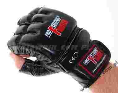 Doskonałej jakości rękawice przyrządowo - sparingowe firmy Professional Fighter z dodatkową ochroną palców, wykonane z najwyższej jakości skóry naturalnej, przeznaczone do walk MMA oraz do treningu na tarczach lub worku.