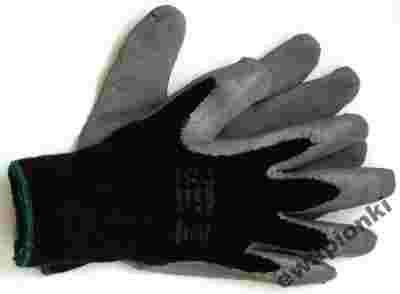 Wykonane są z elastycznej dzianiny bawełnianej w kolorze szarym, powlekane mocno szorstkowanym latexem w kolorze czarnym.