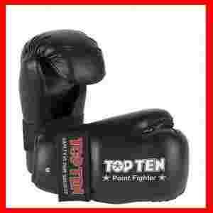Rękawice otwarte firmy TOP TEN POINT FIGHTER wykonane ze skóry syntetycznej. Stworzone do point-fightingu. Bardzo lekkie rękawice ze specjalnie ukształtowanym obiciem. Zapięcie na rzep. Dostępne kolory: czerwony, czarny, niebieski.