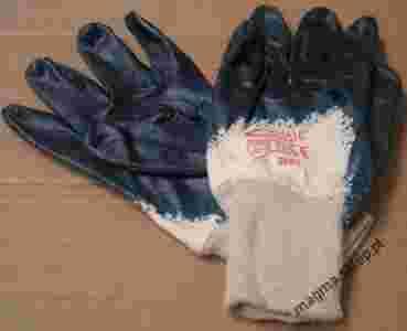 RĘKAWICE OBLEWANE GRUBĄ WARSTWĄ NITRYLU W KOLORZE NIEBIESKIM, ZAKOŃCZONE ŚCIĄGACZEM. CHARAKTERYZUJĄ SIĘ ZWIEKSZONĄ ODPORNOŚCIĄ NA PRZETARCIA. NITRYL ZWIĘKSZA ODPORNOŚĆ NA SMARY I OLEJE.