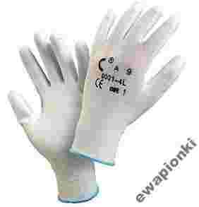 Przedmiotem aukcji są rękawice ochronne wykonane z białego nylonu powlekane powłoką poliuretanową zakończone ściągaczem w rozmiarach