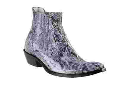 Model wsuwany z gumką po bokach zapewniającą wygodne ubieranie i dopasowanie do stopy. Całkowita długość cholewy wraz z obcasem to 17 cm, a jej szerokość u samej góry to 13 cm. Obuwie wykonane ze skóry bydlęcej z wytłoczeniem imitującym skórę jaszczurki.