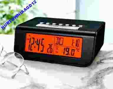 Radiobudzik z podświetlanym na bursztynowo wyświetlaczem, dzięki któremu zawsze czytelne sprawdzisz dokładny czas, datę, dzień tygodnia i temperaturę w pomieszczeniu.