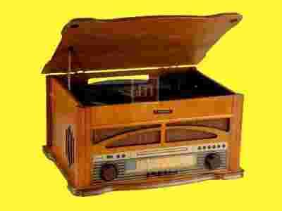 Nowoczesny odtwarzacz w stylu retro. Odtwarza płyty CD, płyty winylowe, kasety magnetofonowe oraz muzykę w formacie MP3 i WMA, a dodatkowo jest wyposażony w tuner AM/FM.