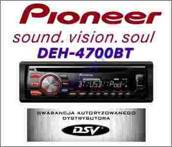 Nowy PIONEER DEH-4700BT to funkcjonalny radioodbiornik z wbudowanym zestawem głośnomówiącym w technologii Bluetooth, który umożliwia bezpieczne i zgodne z prawem bezstresowe korzystanie z telefonu w samochodzie. Za pośrednictwem złącza USB można odtwarzać pliki mp3 WMA WAV z przenośnej pamięci lub podłączyć iPhone iPod czy odbiornik Smartphone. Radio odczytuje pliki mp3 WMA WAV z USB oraz obsługuje odtwarzacz iPhone wraz z funkcją ładowania, a także współpracuje z Android Media w wersji 4.0 i wyższej. Dzięki zastosowaniu oprogramowania wspomagającego MTP ( Media Transfer Protocol ) można podłączyć większość obecnych na rynku telefonów Smartphone. Doskonale i pewnie działająca wyszukiwarka folderów/ plików ułatwia pozwala na natychmiastowy dostęp do każdego folderu lub utworu. Dodatkowo przez wejście AUX można podłączyć przenośny odtwarzacz lub Telefon komórkowy. Wydajny wzmacniacz 4x5OW mosfet dostarczy odpowiednią moc, korektor graficzny i regulowany loudness ułatwią dopasowanie indywidualnej charakterystyki brzmienia wg własnych upodobań. Wyjście na wzmacniacz umożliwiają podłączenie mocniejszych głośników i Subwoofera