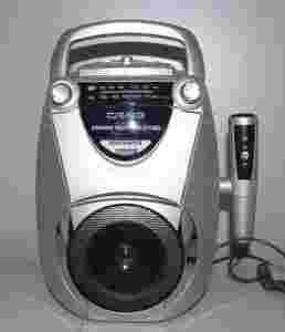 Przewodowy mikrofon umożliwia wykorzystanie urządzenia, jako przenośnego odtwarzacza karaoke.