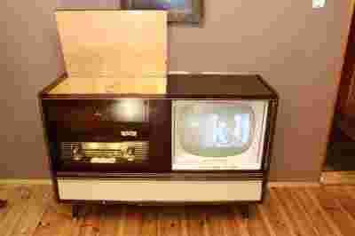 Przedmiotem sprzedaży jest unikatowa, zabytkowa szafa 4 w 1, tzn. radio, adapter , magnetofon szpulowy, telewizor.