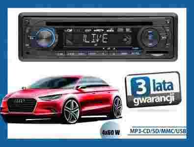 - Negatywowy wyświetlacz LCD o dużej rozdzielczości - Port USB/gniazdo MMC/SD - Zabezpieczenie anty-kradzieżowe w formie zdejmowanego panelu obsługowego (z futerałem ochronnym) - Automatyczne sterowanie anteną - ESP (Electronic Shock Protection) - Przełącznik Stereo/Mono - Wtyczka zgodna z normą ISO CD/MP3: - Automatyczne wciąganie płyt CD (Slot in) - Automatyczne wykrywanie formatu audio CD/MP3 - Odtwarza CD-R, CD-RW, MP3 - Wyszukiwanie tytułów - Przeskakiwanie tytułów - Funkcja odtwarzania początków utworów - Funkcja powtarzania - Funkcja dowolna - Start, Pauza - MP3-tekst (ID3-dzień-tytuł) Radio: - 2-zakresowy tuner stereo (tuner UKW/MW/PLL) z RDS - Automatyczne i ręczne strojenie stacji - Pamięć stacji (18UKF/6MW) - Funkcja PTY - Informacje o sytuacji na drogach Wzmacniacz: - 4 x 60Watt PMPO - Regulacja brzmienia - Balans - Niskie tony - 4 złącza do głośników - Equalizer - Złącze RCA Lino Out (chinch) Podłączenia: - 4 złącza do głośników - Złącze RCA Line Out (chinch) - AUX IN - Podłączenie dla anteny - Port USB/gniazdo/MMC/SD* * moduł USB-Stick ani karty pamięci nie są dostarczane w komplecie urządzenia