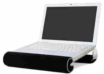 posiada regulowaną, obrotową podstawę, która umożliwia ustawienie optymalnej wysokości do pracy z laptopem zarówno na kolanach jak i na biurku. Produkt wyposażono również w aksamitne i miękkie wykończenie, utrzymujące laptopa na swoim miejscu i znacznie podnoszące komfort użytkowania.