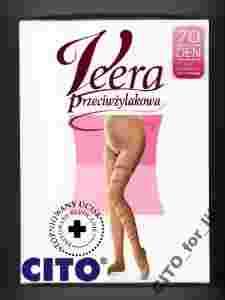Do powstawania żylaków przyczynia się niezdrowy tryb życia, np. długotrwała praca w jednostajnej siedzącej lub stojącej pozycji, częste i wielogodzinne podróże, otyłość, palenie papierosów. Profilaktyczna terapia uciskowa pozwala uniknąć nieodwracalnych zmian. Kolekcja Veera to nowoczesne, eleganckie i wygodne produkty przeciw żylakowe. Zapewniają nie tylko skuteczność ale także estetykę. Wykonane tak, aby ucisk był największy w okolicy stawu skokowego -13-17 mmHg, a im wyżej nogi tym mniejszy. Rajstopy ciążowe posiadają specjalną, rozciągliwą siatkę w miejscu brzucha oraz regulowany pas. Dzięki takiej budowie idealnie spełniają swoją funkcję uciskając w miejscach zagrożonych powstaniem żylaków nie powodując ucisku na brzuch. Palce i pięty są wzmocnione dzięki czemu rajstopy są znacznie trwalsze.