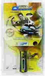 Rakietka do tenisa stołowego renomowanej niemieckiej firmy Donic Schildkröt, Gold Control, rączka rakietki złożona z 5 sklejek Tactic do nauki gry, technicznie z rotacją i dużą szybkością, okładzina dla osób grających uniwersalnie, o grubości 1,5mm. Ergonomic Grip. Rączka ergonomiczna, idealnie pasuje do dłoni. Dzięki unowocześnionej, drewnianej części rączki i rakietki – odczuwamy je jako jedną całość. Zaokrąglony kształt drewnianej części rączki nie powoduje nacisku na dłoń i zapewnia szczególnie wygodne i przyjemne czucie rączki. Anti-Vibe-System. AVS zapewnia lepszą kontrolę piłki i zmniejsza drgania powodowane przez energię uderzającej piłeczki, dzięki 2 specjalnym, tłumiącym drgania, miękkim przekładkom laminowanym pomiędzy warstwy sklejki deski i rączki rakietki. Jako rezultat - AVS zwiększa precyzję uderzenia zarówno dla ofensywnego jak i defensywnego stylu gry.