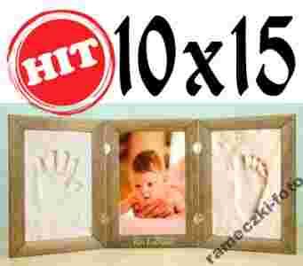 na zdjęcie formatu 10 x 15 cm i pamiątkowe odciski w glince rączki i stópki.