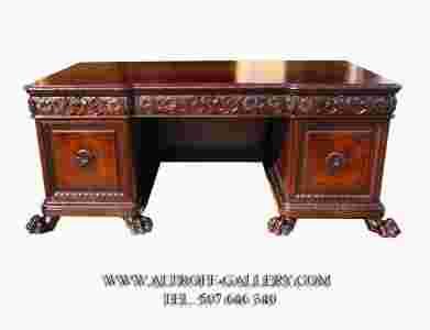 ( masyw dębowy ). Tył biurka zabudowany. Mebel niezwykle reprezentacyjny, o monumentalnej formie, nawiązującej do włoskiego renesansu. Idealny do ekskluzywnego gabinetu.