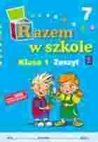 Zeszyt 7 uzupełnia treści zawarte w podręczniku Razem w szkole. Część 7. Dzieci, korzystając z tego zeszytu, utrwalają wiadomości i doskonalą umiejętności zdobyte podczas zajęć, aby potrafiło coraz lepiej: rysować po śladzie i pisać wzory literopodobne, rozpoznawać i pisać litery: ó Ó, ń, ś Ś, ź Ź, ć Ć, rozpoznawać i pisać dwuznaki: sz Sz, cz Cz, dz Dz, układać i pisać wyrazy i krótkie zdania, odczytywać wyrazy z rozsypanych liter, rozróżniać i liczyć głoski w słowach i litery w wyrazach, czytać litery, sylaby, wyrazy, krótkie teksty, czytać ze zrozumieniem krótkie teksty, przepisywać starannie, pisać z pamięci, pisać życzenia, dodawać i odejmować w zakresie 10, posługiwać się pojęciami: litr, kilogram, dodawać i odejmować wyrażenia mianowane, rozwiązywać zadania z treścią i łamigłówki, krótko wypowiadać się na dany temat i odpowiadać na pytania, liczyć elementy zbioru, rozróżniać liczby parzyste i nieparzyste w zakresie 10, porównywać liczby i stosować znaki: <, >, =, rysować, kolorować obrazki, rozpoznawać zwierzęta żyjące w parku, w lesie, w gospodarstwie, rozumieć zwyczaje ptaków wiosną, rozpoznawać niektóre rośliny rozkwitające na wiosnę, podawać charakterystyczne cechy pogody, posługiwać się słownictwem związanym ze świętami wielkanocnymi, słuchać ze zrozumieniem czytanego tekstu. Zestawy ćwiczeń zostały dobrane tak, aby nauczyciel mógł korzystać z nichna bieżąco i doskonalić umiejętności dziecka stosując zasadę indywidualizacji. Ważna jest jakość wykonywanych ćwiczeń, nie wolno więc wymagać od dziecka mechanicznego wypełniania stron zeszytów. Nauczyciel powinien już na początku roku szkolnego zapoznać rodziców z zeszytami i omówić sposób korzystania z ćwiczeń. W zeszycie znajdują się dłuższe teksty do słuchania, mające na celu wyrabianie u dzieci nawyków czytelniczych oraz budowanie więzi między czytającym a słuchaczem. Są one skorelowane z treściami zawartymi w podręczniku. Uczeń doskonali umiejętność słuchania ze zrozumieniem. Na końcu każdego zeszytu rodzice i nauczyciele znajdą porady psychologa: o dojrzałości szkolnej dziecka, przygotowaniu miejsca do nauki, dbaniu o zdrowie dziecka, jak współpracować i kontaktować się ze szkołą, jak dbać o bezpieczeństwo dziecka, jak je motywować do nauki... i wiele innych pożytecznych porad.