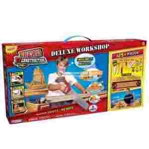 Opis produktu:Zestaw deluxe składa się z 125 elementów takich jak: piłka do cięcia drewna, młotek, śrubokręt, kątownik, gwoździe, śrubki, zawiasy i deseczki drewniane. Z tego zestawu można zbudować 8 różnych projektów np. helikopter, samolot, łódka, wyścigówka, czołg, tir. Zabawa jest całkowicie bezpieczna, a dziecko bawiąc się nie robi bałaganu.Zabawka przeznaczona:dla dzieci od 6 lat.
