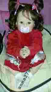 stan bdb jedyny mankament to uszkodzony jeden paluszek u ręki został w miarę dosztukowany aby nie bylo braku w rączce wszystko widoczne na zdjęciach .Marie jest lalą pochodzacą z limitowanej edycji,posiada sygnaturę .Dziewczynka wykonana jest z najbardziej realistycznego materiału oddającego w wygladzie i dotyku efekt ludzkiego ciała,skóry ,czyli z silikonu .Marie jest bardzo dużą i masywną lalką obwód głowy lalki wynosi 49cm dlugosc stopy 9,5 cm lala jest ciążka wazy lekko 3 kg z tego co pamiętam trzymając ją na rękach ma się wrażenie jakby się trzymało prawdziwe dziecko ręce i nogi są nabite wypełnione wewnątrz silikonem a przy tym mięciutkie i delikatne w dotyku.Korpus miekki z wypełnieniem ręce i nogi na kółeczkach pozwalają lalkę dowolnie układać.Marie potrafi sama siedzieć,włoski są delikatne w dotyku,dobrze się rozczesują można je myć i czesać w różne fryzury,lala w uszach ma prawdziwe kolczyki .Dziewczynka będzie ślicznym manekinem czy to do sklepu czy do zdjeć jest bardzo fotogeniczna i można na niej prezentować całoroczną odzież dziecięcą .Lalkę sprzedaję w ubrankach ze zdjęć łącznie ze smoczkiem poniżej real foto
