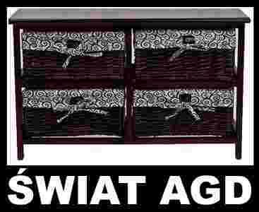 Regał drewniany z 4 wiklinowymi szufladami