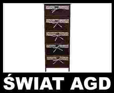 Regał drewniany z 5 wiklinowymi szufladami