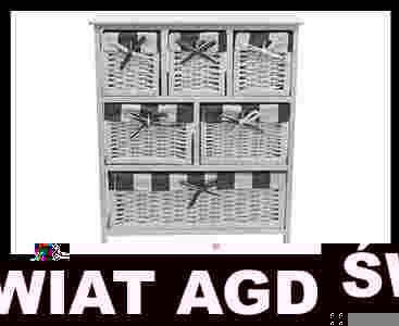 Regał drewniany z 6 wiklinowymi szufladami