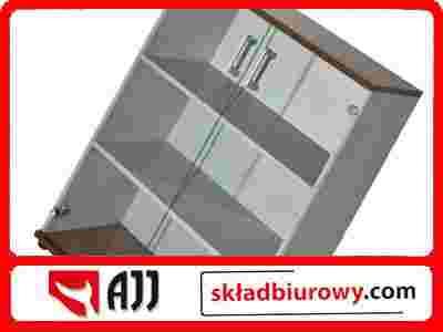 Regał wyprodukowany jest na bazie wysokiej jakości płyt wiórowych melaminowanych. Wąskie płaszczyzny elementów meblowych starannie wykończone obrzeżami PCV. Topy regałów wykonane z płyty o grubości 22 mm natomiast korpusy z płyty 18 mm. Regał wyposażony w podwójne szklane drzwiczki. Wszystkie regały systemu Grau posiadają śruby poziomujące ułatwiające poziomowanie mebli na nierównej podłodze.
