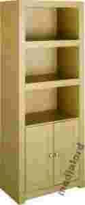 Półotwarty regał na książki lub segregatory wyposażony w 2 otwarte półki i 1 zamykaną.
