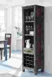 Seria oferuje wiele różnorakich mebli, wśród nich znajdziesz także wspaniały i niepowtarzalny regał na wino. Może na nim leżakować aż 16 Twoich ulubionych odmian wina. Ale to nie wszystko, ten nietuzinkowy regał posiada trzy odkryte półki, które pomieszczą naczynia lub ozdoby - co tylko zechcesz. Szuflada to idealne miejsce na mniejsze przedmioty np. akcesoria do otwierania wina bądź zamykania już otwartych butelek. Wysoka funkjonalność to nie jedyna zaleta regału, mebel jest także niezwykle urodziwy, modny i z pewnością przykuwa uwagę. Dodatkowym atutem regału jest fakt, że został on wykonany z bardzo solidnego i twardego drewna drewna tekowego stylizowanego na stare i lekko podniszczone, co niewątpliwie dodaje mu uroku i oryginalnego wyglądu. Każdy egzemplarz jest wyjątkowy i niepowtarzalny,dlatego kolory mogą odbiegać od tych przedstawionych na zdjęciu. Wymiary regału: wysokość: 180 cm szerokość: 50 cm głębokość: 40 cm