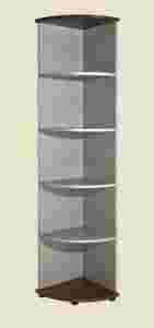 Z przyjemnością polecamy Państwu regał narożny wyprodukowany na bazie wysokiej jakości płyt wiórowych melaminowanych. Wąskie płaszczyzny elementów meblowych starannie wykończone obrzeżami PCV.Elementy dekoracyjne mebli pokryte są laminatami. Grubość topu i dolnych wieńców–22 mm, korpusu regału – 18mm.